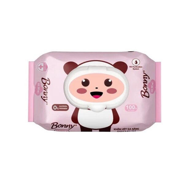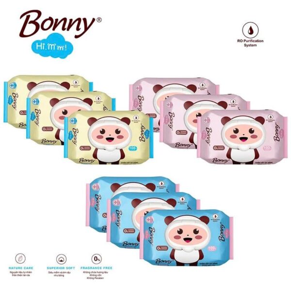 KhÄn ưá»t Bonny không mùi, dá»u nhẹ cho da bé, gói 100 tá» tiết kiá»m.
