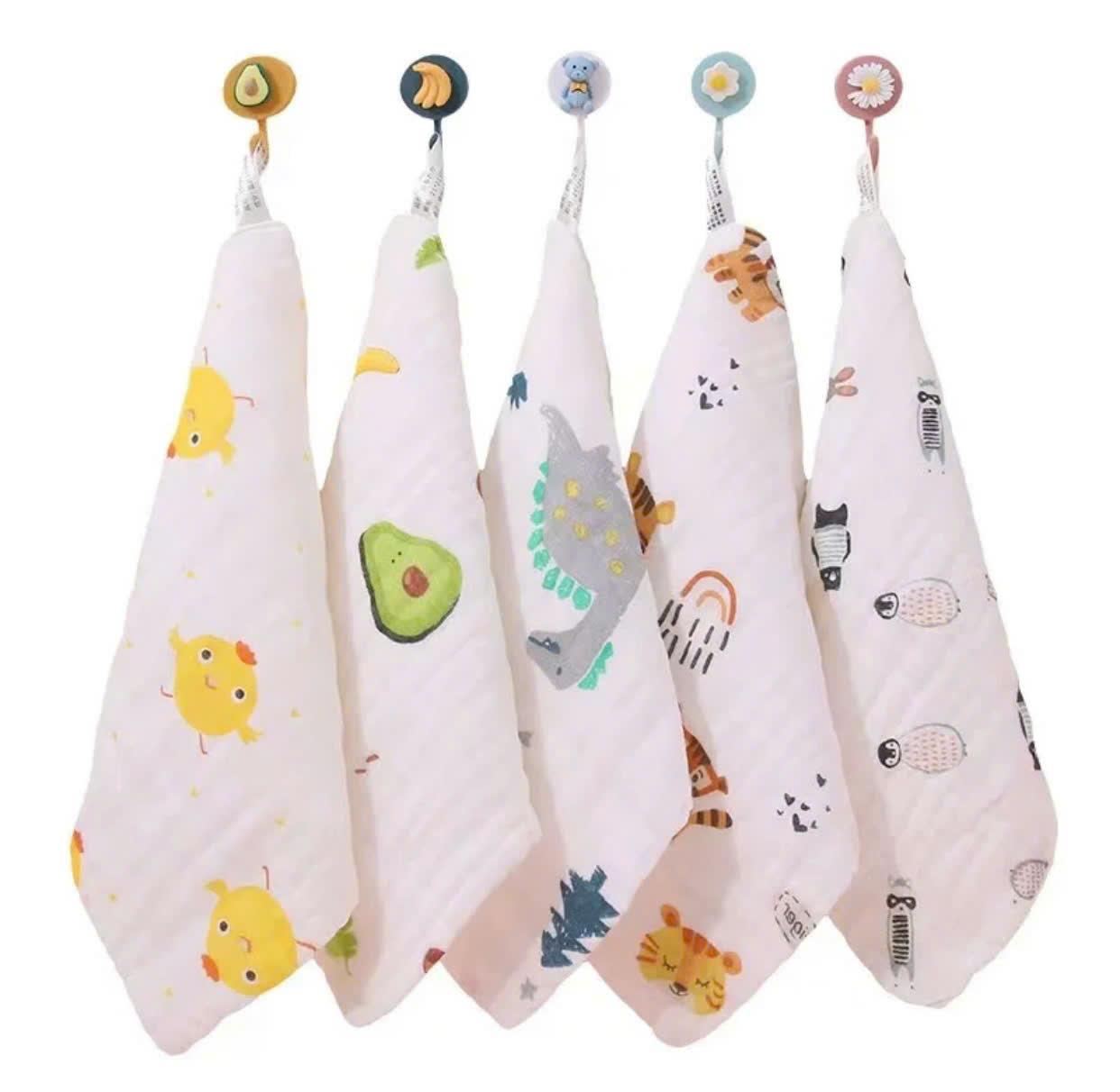 Set 5 Khăn Mặt Khăn Xô Sữa ORGANIC 6 Lớp Mềm Mại Cho Bé Cotton