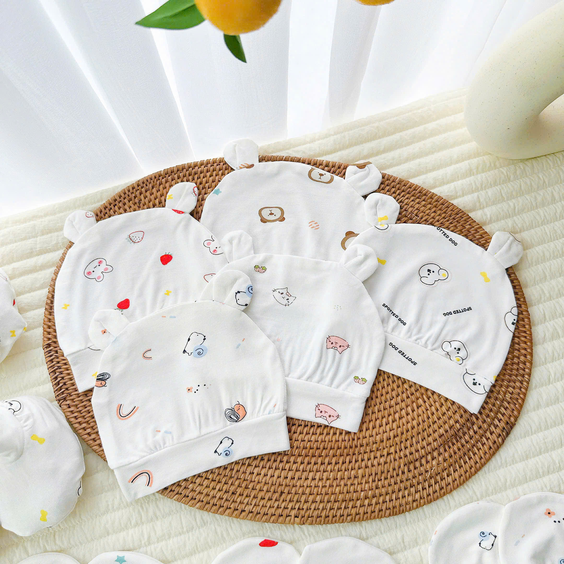 Set mÅ©, bao tay, bao chân chất liá»u muslin má»m mại, há»a tiết dá»