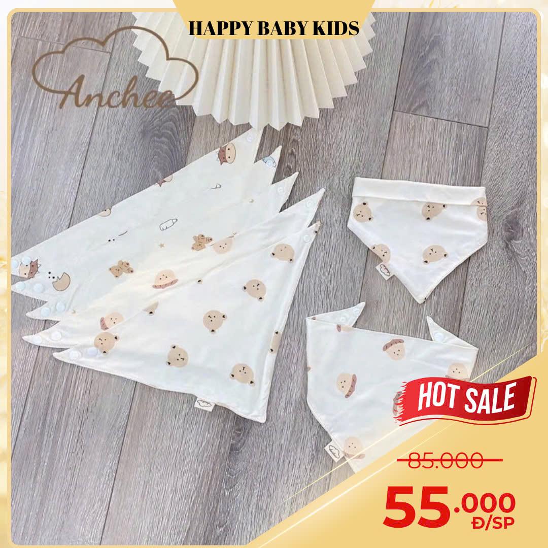 Set 5 Yếm Tam Giác Anchee – Khăn Quàng Cổ Cotton Cúc Bấm Mềm Mịn Cho Bé