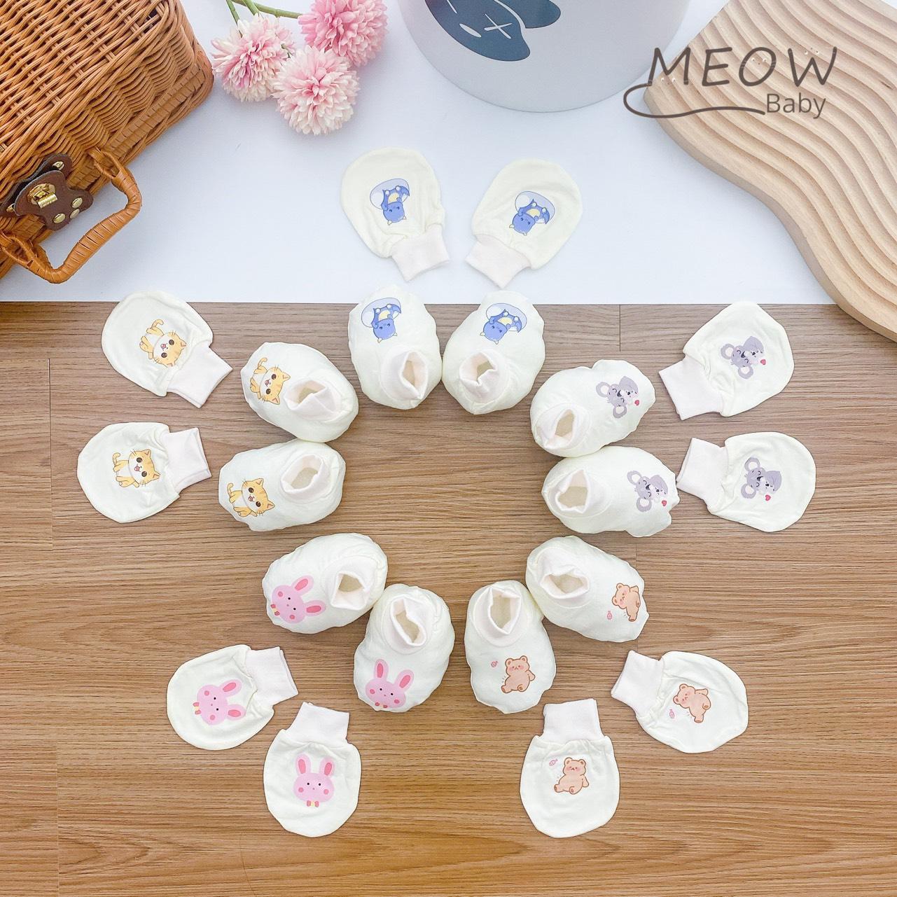 Combo bao tay, bao chân và mũ cotton cho bé sơ sinh, mềm mịn và an toàn.